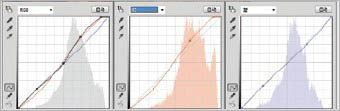 29、建立曲线调整层,分别调整R G B、红和蓝通道。