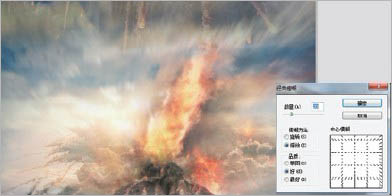 11、加入云层图片, 图层混合模式选择正面叠底,并做径向模糊效果。