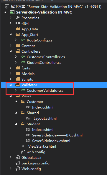 然后新建一个文件夹Validator,在里面添加一个类CustomerValidator