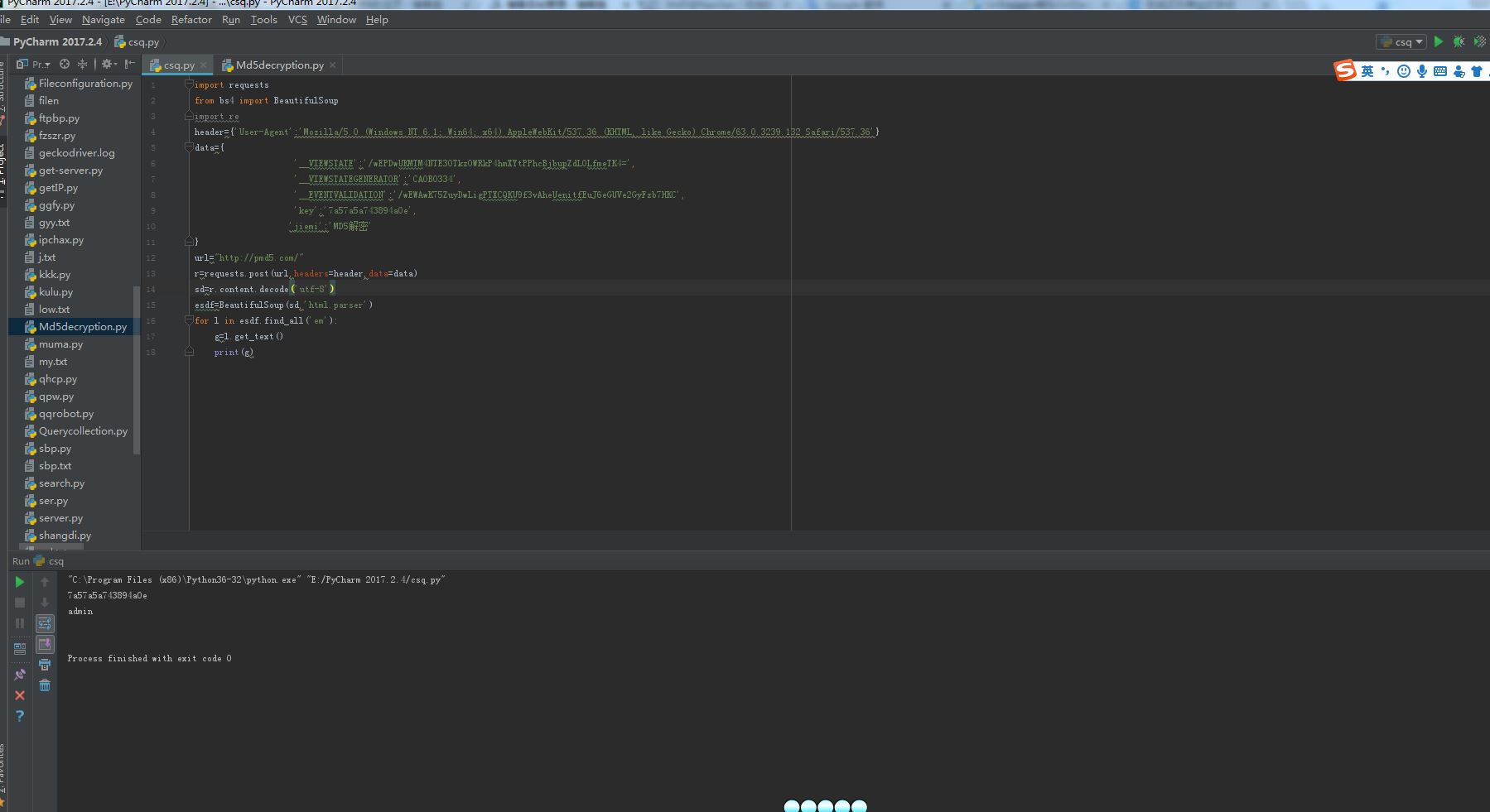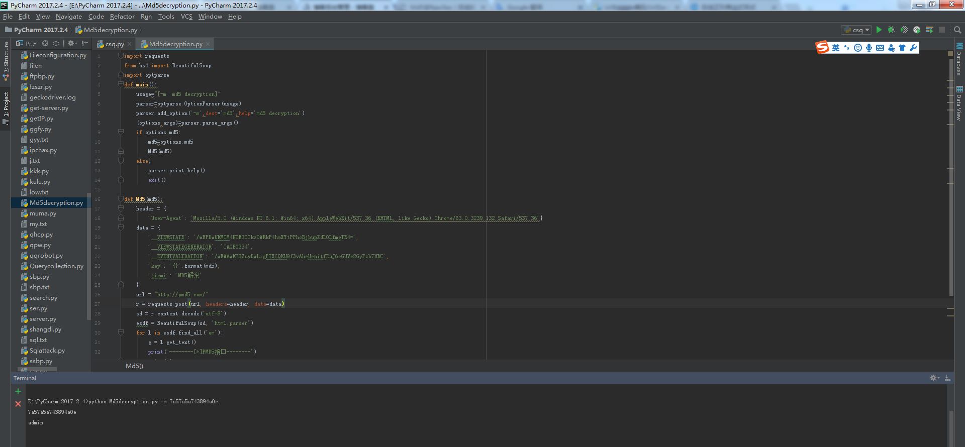 以上就是曾经酸奶最近收集整理的关于python写一个md5解密器示例的全部内容,更多相关python写一个md5解密器示例内容请搜索靠谱客的其他文章。