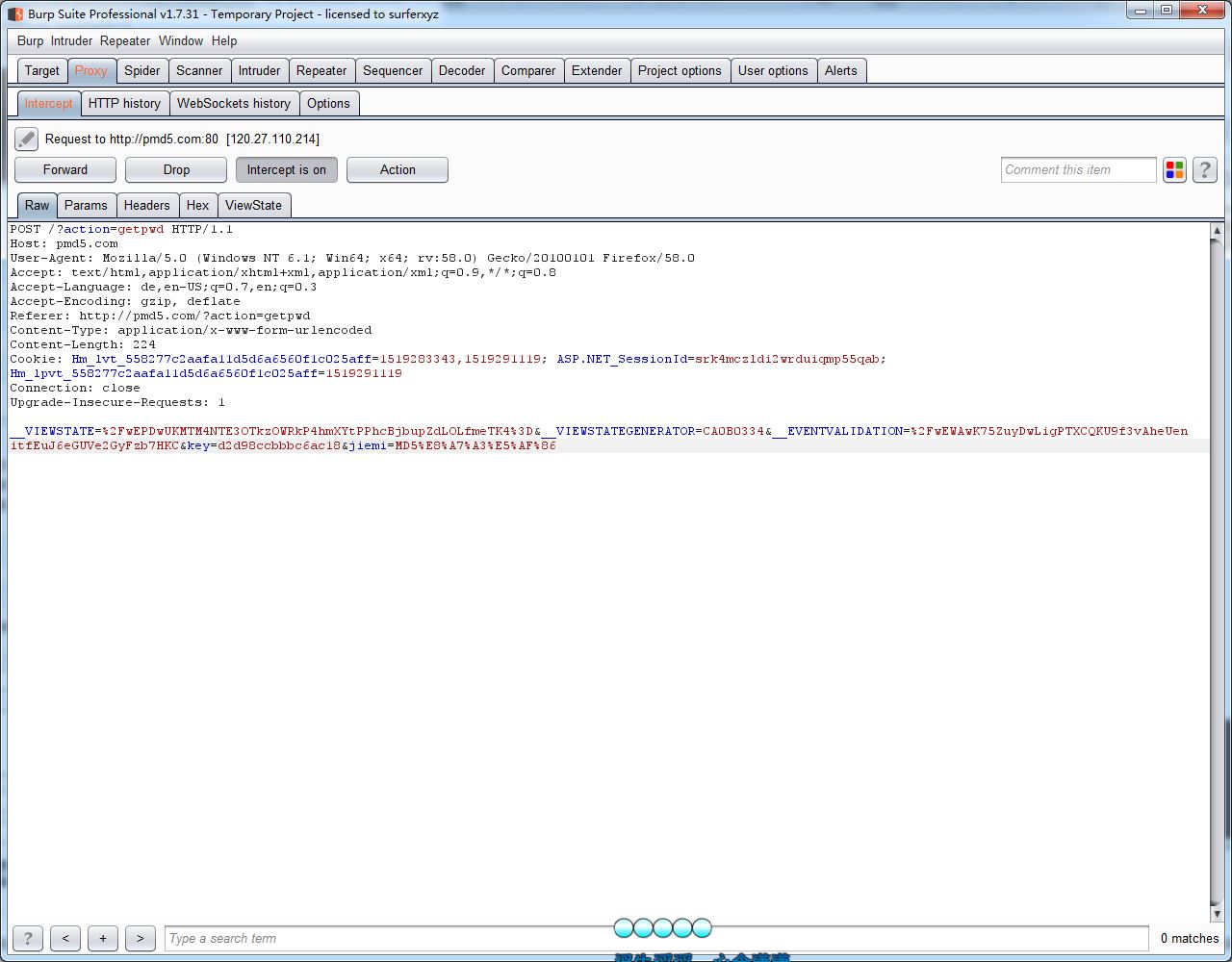 然后我们可以在burp上看到抓取的包