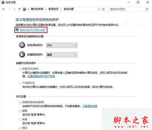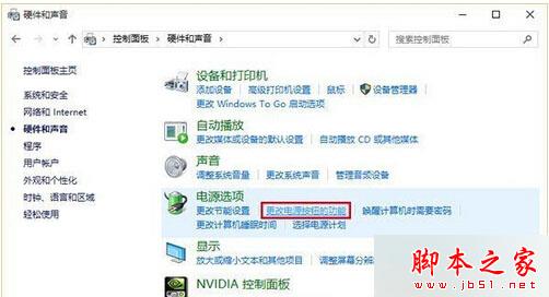 3、打开“电源选项”中找到“更改电源按钮的功能”,(这个和win8.1是一样的);