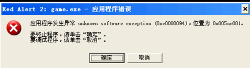 1、 首次打开游戏,有指针错误的提示,这是由于红警不支持中文文件夹的原因,只要将从硬盘目录开始到红警2所在的文件夹所有的文件夹命名为英文就可以了