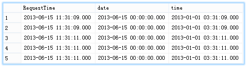 select RequestTime, date, time from MyMVC_WebLog2