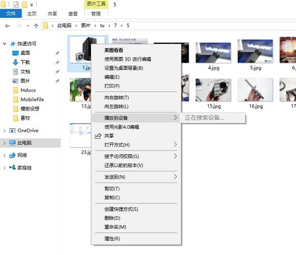 其实导致鼠标移动到Win10右键菜单“播放到设备”卡顿或者电脑司机,罪魁祸首不是这个“播放到设备”,而是这个里面还有一项二级菜单“正在搜索设备...”,如果能把正在搜索设备去掉,一样不会出现卡顿司机问题。