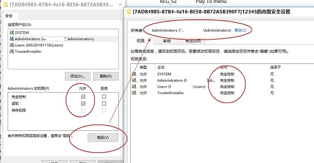 1、首先进入Win10注册表,定位到HKEY_CLASSES_ROOT\CLSID\{7AD84985-87B4-4a16-BE58-8B72A5B390F7},属性-----高级,将该主键的所有者设置为Administrators组,同时将Administrators组设置为完全控制权限。。