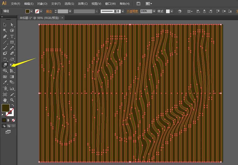 3、使用变形工具,旋转扭曲工具,缩拢工具,膨胀工具,晶格化工具,分别对矩形上面进行路径的改变,为了制作纹理。