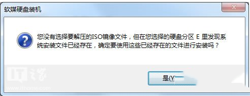2、若盘符内含有相应的镜像解压文件,那么下次再次重装系统时,只需直接在步骤二中选择相应盘符,就会提示“安装镜像文件已存在”。直接选择“是”就可以使用了,无需二次解压。
