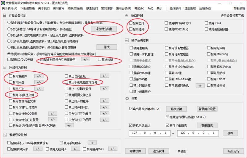 在逛论坛的时候,有网友推荐了一款软件叫“大势至电脑文件防泄密系统”,这款软件还不错,基本上封堵了全部的文件传输途径,算是很人性化的了。