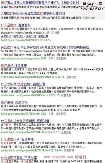 今天并不是来批判百度的,但这张图可以很好的说明百度对于自家产品的过度偏爱。最上面的是百度的赞助广告,然后依次是百科,知道,文库。呵呵,可以说百度全家上阵了,还好百度现在只有这几个项目,如果再多一点,估计各位小站长连西北风都喝不到了。你可能觉得是这个词没有多少人竞争,造成了这种情况,这点就错了。首先,医疗这个词的利润很高,做过google广告的应该都知道,这是单价最高的几个词之一,做的人不会太少。其次,百度这个搜索结果的第二页,分别是搜狐,天涯,网易,新浪一家不少。
