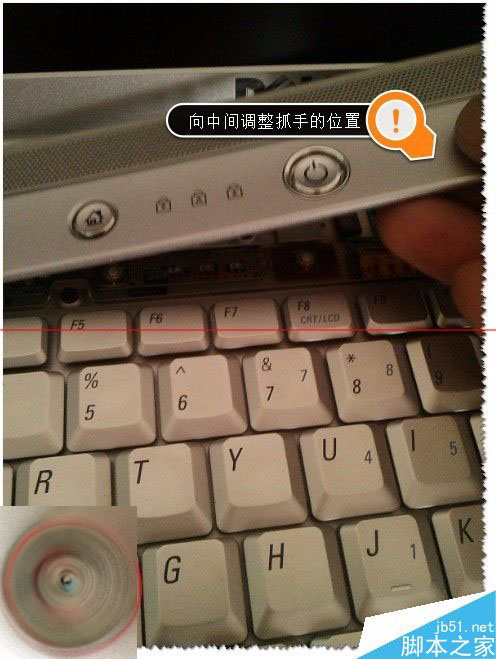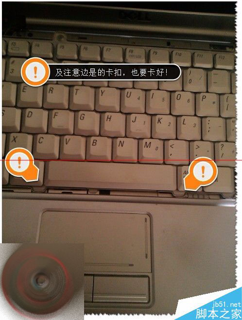 8、然后把键盘的底部及边上的卡扣卡好,安装好键盘锁上螺丝。(安装就比较简单了参上拆卸),如图