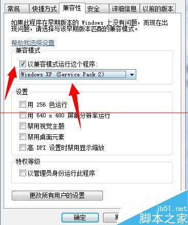 3、进入兼容性界面,勾选【以兼容模式运行这个程序】,然后在下方选择【windows XP(Service Pack2)】,点击下方确定选项