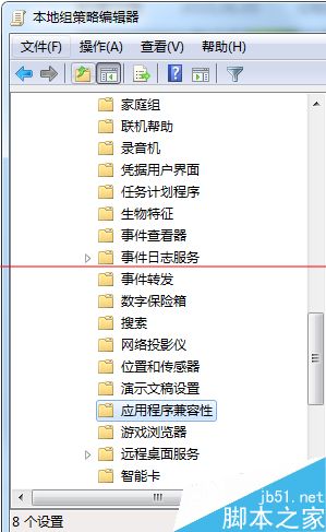 3、进入组策略依次打开【计算机配置】【管理模板】【windows组件】【应用程序兼容性】