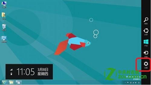 方法三:将鼠标指针移到桌面右下角,选择“设置”->“控制面板”->“轻松使用”->“轻松使用设置中心”->“设置高对比度”。