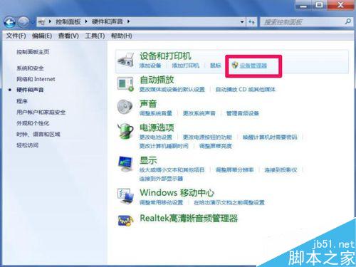 在下一个窗口,选择“设备和打印机”下的“设备管理器”这一项。
