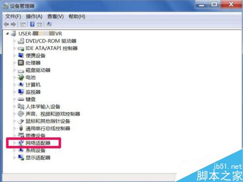 进入设备管理器窗口,在设备列表中,找到“网络适配器”这一项,然后打开它所包含的设备。
