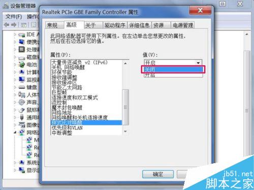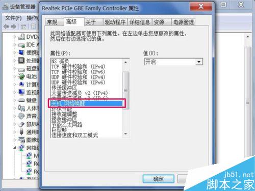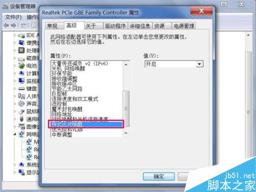 再回到属性列表框中,找到并选择“关机 网络唤醒”这一项。