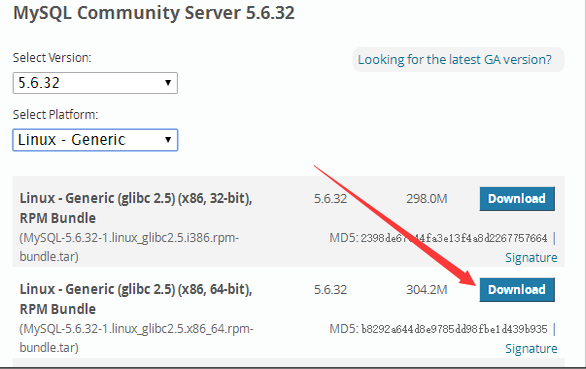 1、MySQL 5.6.32 64位安装包下载