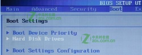 接下来就以我的本为例了,设置项如有细微差别请自行纠错。选择“Boot”菜单下的“Hard Disk Drives”。