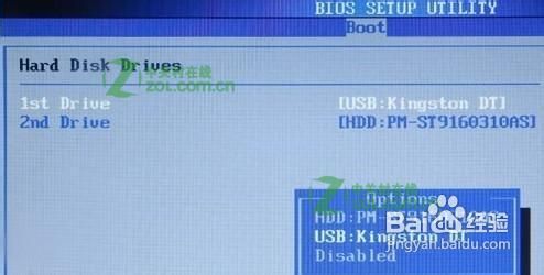 将“1st Drive”设置为你的U盘,本例为“USB:Kingston DT”。