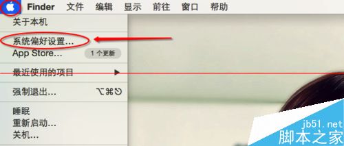 1、点击Dock栏上的“系统偏好设置”图标(如果Dock栏上没有这个图标,也可点击屏幕左上角的“小苹果”图标,选择“系统偏好设置...”);