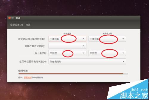 1、电源设置。电源设置控制一些休眠(挂起)的事件。要按照自己喜好设置一下。避免挂起可以选择【不要挂起】和【不处理】如图: