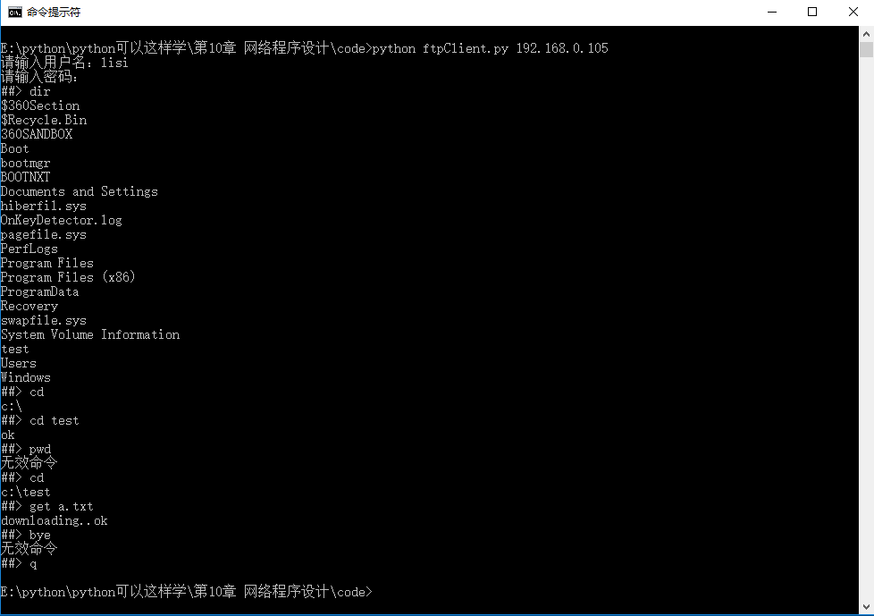 以上就是单纯星月最近收集整理的关于Python实现的FTP通信客户端与服务器端功能示例的全部内容,更多相关Python实现内容请搜索靠谱客的其他文章。