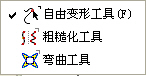 自由变形工具成为一个新的工具组,加入了原本在外加功能工具栏中的粗糙化工具和弯曲工具。方便了对象的变形操作。