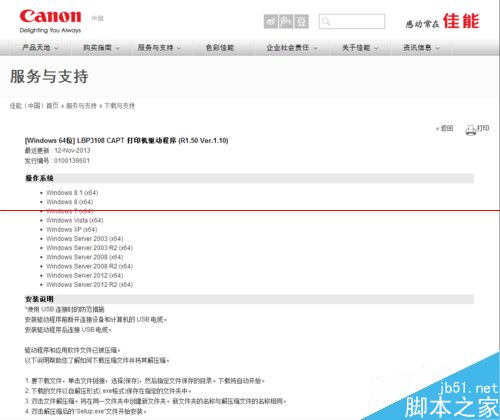 4、这里有关于LBP3018相关驱动,选择与自己电脑系统相符合的驱动,然后点击进去。