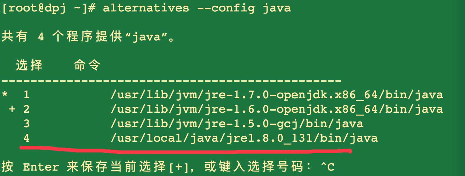 看到的结果和二(3)的结果一样,注意最后一句英文:Enter to keep the current selection[+], or type selection number ,翻译过来就是按Enter键来保存当前选择[+],或渐入选择号码。我键入号码4 表示我选择使用java 1.8.0