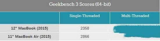 通过跑分软件测试可以很清楚地看到,MacBook所搭载的酷睿M处理器性能单核、双核性能都要比MacBook Air的酷睿处理器逊色一些,而集成的图形芯片性能基本上仅达到了2011款13英寸MacBook Air的水平。另外,MacBook Air还提供了酷睿i7处理器的选择,性能更加强劲。