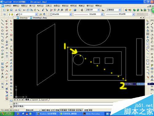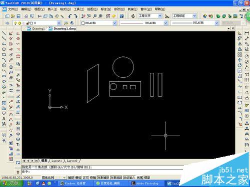 2、再随便打开一个CAD文件,如图所示,由于图中图案有好几个,并且位置都不较近,所以我们如何只打印长方形区域呢,往下看