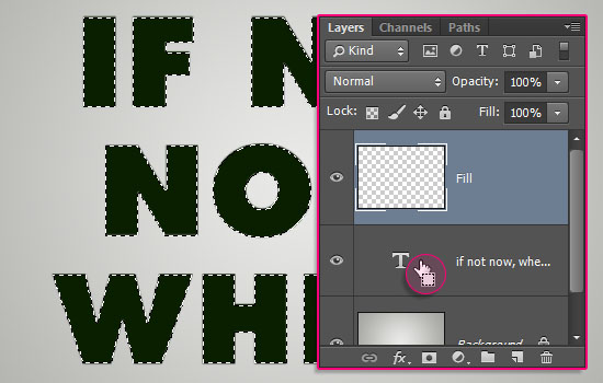 按住Ctrl键单击文字图层缩略图以创建一个选区,然后新建一个图层,命名为Fill.