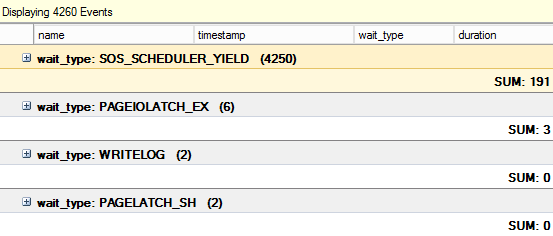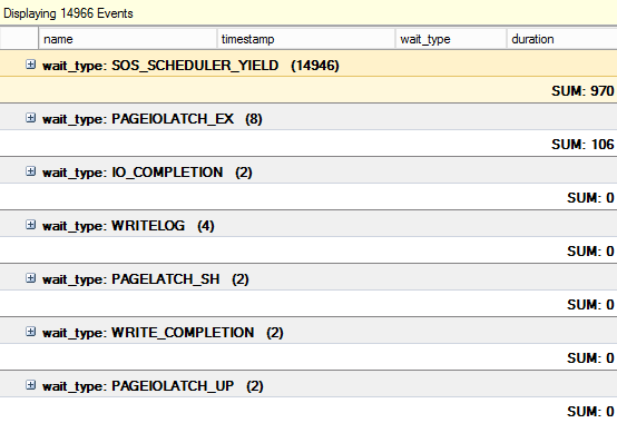 从2个图中可以看到,2个运行的测试有巨大的区别,尤其是在PAGEIOLATCH_EX 和 SOS_SCHEDULER_YIELD等待类型。