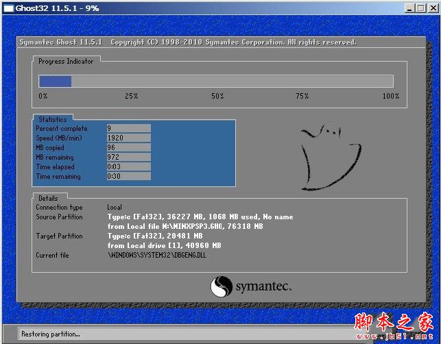 接下来会出现一个正在解压GHO的窗口,该窗口有进度条,此时我们无需做任何操作,只需耐心等待其完成即可,如下图所示: