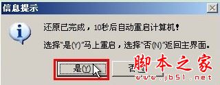 当点击“确定(Y)”按钮后会弹出一个小窗口,我们只需继续点击该弹出窗口的“是(Y)”按钮即可;如下图所示: