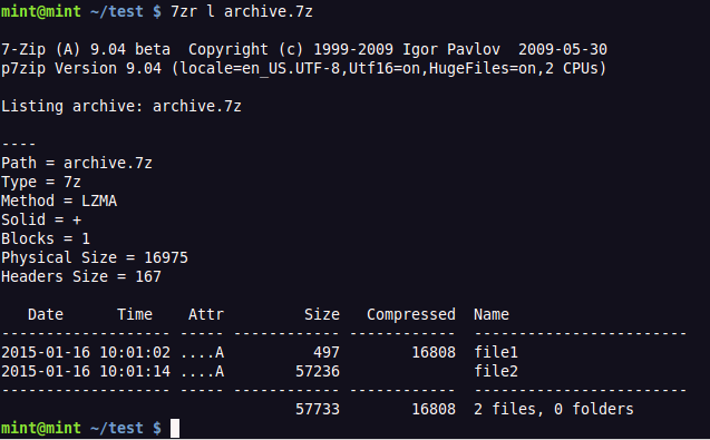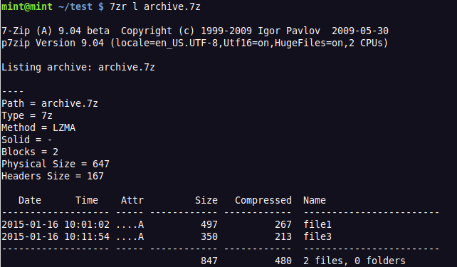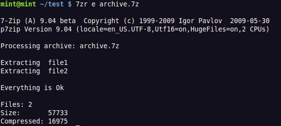 7-zip 是一个开源压缩软件。它使用 7z 这种新的压缩格式,并支持高压缩比。因此,它被认为是比先前提及的压缩工具更好的软件。在 Linux 下,可以通过 p7zip 软件包得到,该软件包里包含 3 个二进制文件: 7z, 7za 和 7zr,读者可以参考 p7zip wiki 来了解这三个二进制文件之间的不同。在本篇中,我们将使用 7zr 来解释 7-zip 的用法。归档文件以 '.7z' 为后缀名。