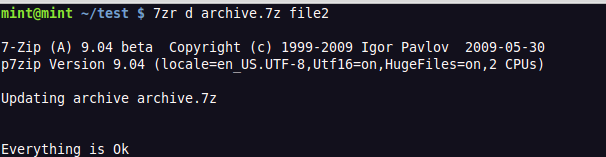 代码如下:7zr d archive-name.7z file-to-be-deleted