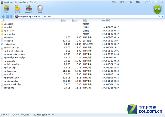 PS:看到一些朋友部署出现了问题,请确认一下下载下来的WordPress安装包是不是在根目录下打包的,如下图所示:
