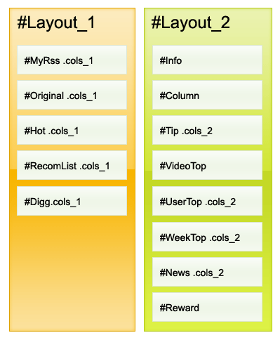 布局说的是将#Main里的内容分成几大块。我们看Tudou.com,#Main里典型的左右结构,我们用#Layout_1,#Layout_2表示。如图