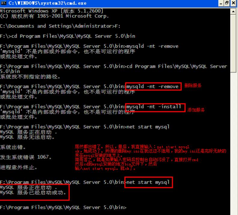 在DOS下 输入 mysqld -nt -remove 删除服务