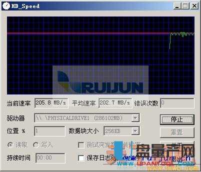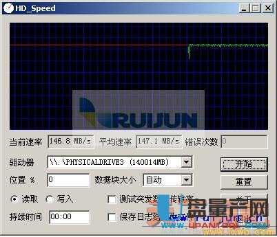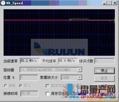 3本测试图,分别给出HDSPEED的读和写速度测试;请大家注意,读写速度并不是总是一样的,很多时候忽略写测试,会导致故障很难发觉;