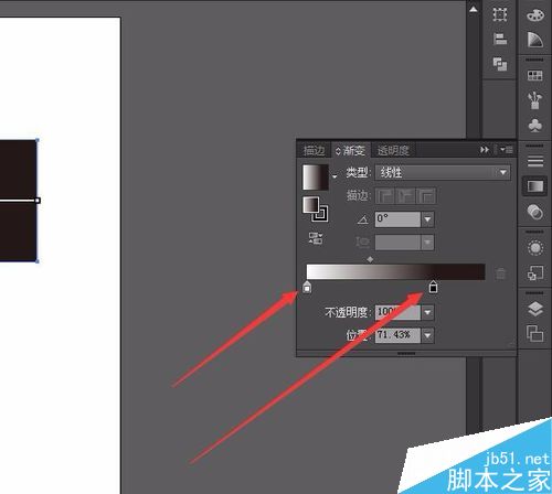 接下来我们就可以调节我们想要的颜色了,在渐变颜色面板里,我们可以看到有一个渐变滑块,我们可以调节滑块来改变渐变的样式,如图: