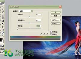 18、新建图层,将前景色设置成黄色,背景色为红色,在飘逸的裙纱上适当画出梦幻星星,最后打上自己需要表达的文字即可。