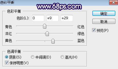 5、创建色彩平衡调整图层,对阴影、中间调、高光进行调整,参数设置如图13 - 15,确定后创建剪切蒙版,效果如图16。这一步增加暗部区域明暗对比。
