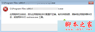电脑中出现了软件无法运行的问题,弹出提示:“应用程序无法启动,因为并行配置不正确,请参阅应用程序事件日志会或使用命令行sxstrace.exe工具”,具体问题现象如下所示: