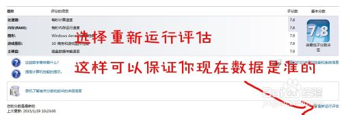 3.选择右下角重新评级. (这样可以才能看到你电脑现在的状况如何,而不是刚装机的时候)._____等待等待,大约几分钟