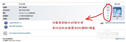 6.更换掉这些低分项目后你重新评级你会发现会有新的相应较低的分数,但是这时候就算你没有使用网上各式各样的优化方法,计算机速度也是刚刚的.!(硬件只有更好,没有最好....)