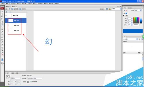 5、然后Adobe Flash CS3的主界面就会变成制作幻灯片的主界面,我们可以开始进行打字等操作,如下图所示。